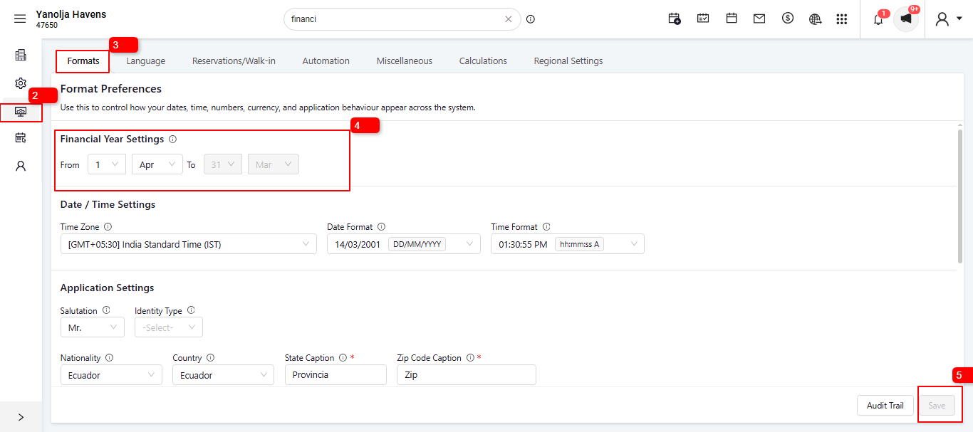 Defining the financial year in the system helps in organizing financial reports and records correctly. Follow these steps to set or update the financial year for your property.