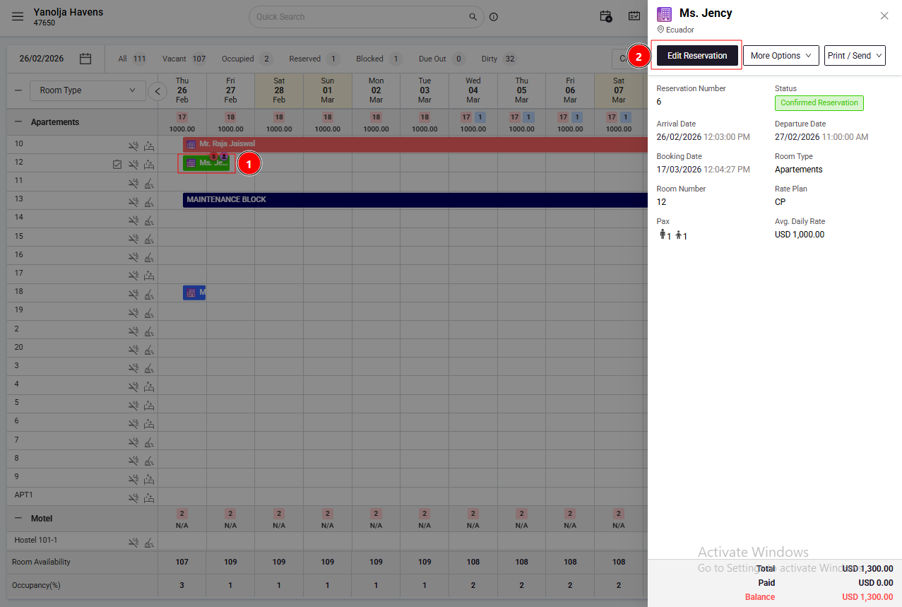 Go to Edit Reservation