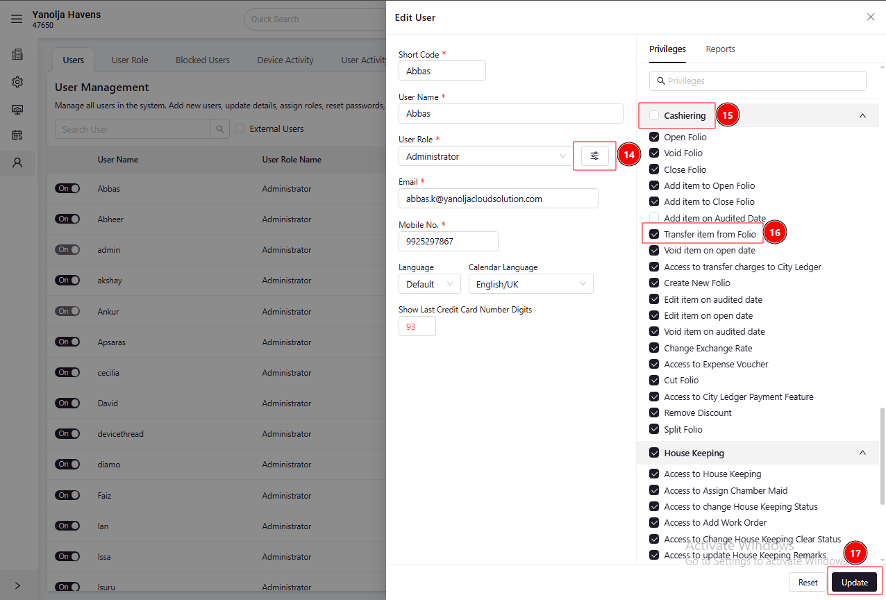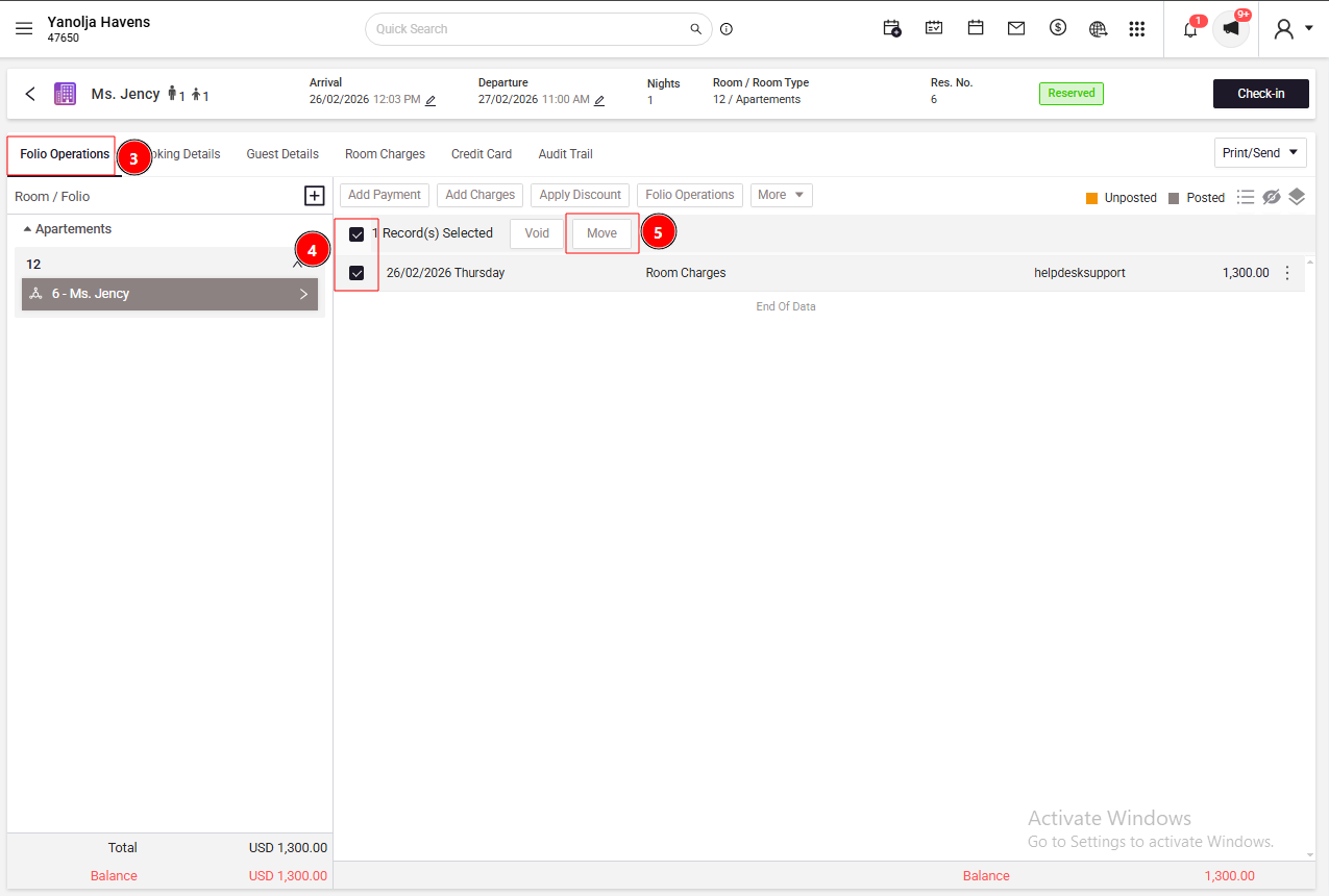 Click on Folio Operations