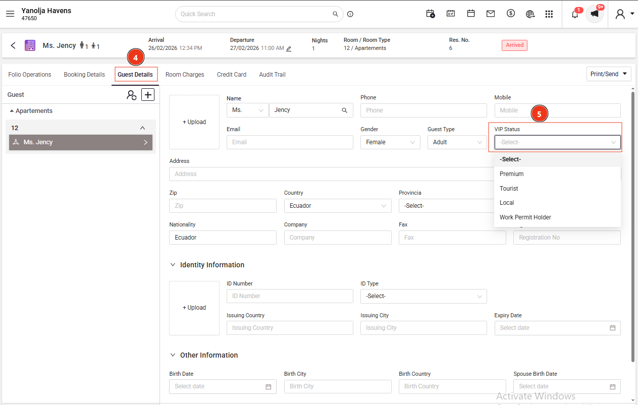By correctly configuring and assigning VIP status, PMS will automatically handle green tax calculations in compliance with Maldivian regulations, ensuring accurate billing and reporting.
