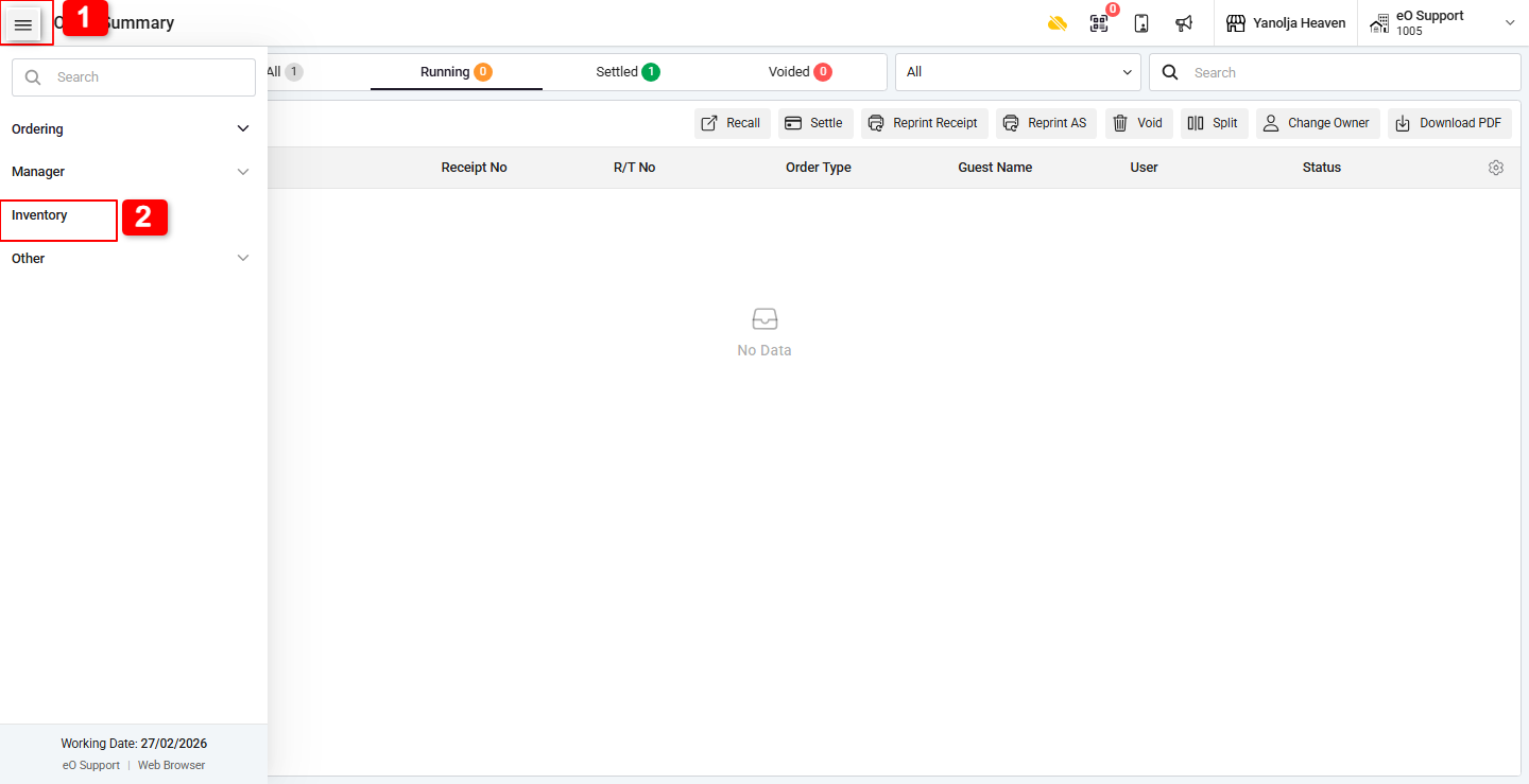 2. Click on Inventory.