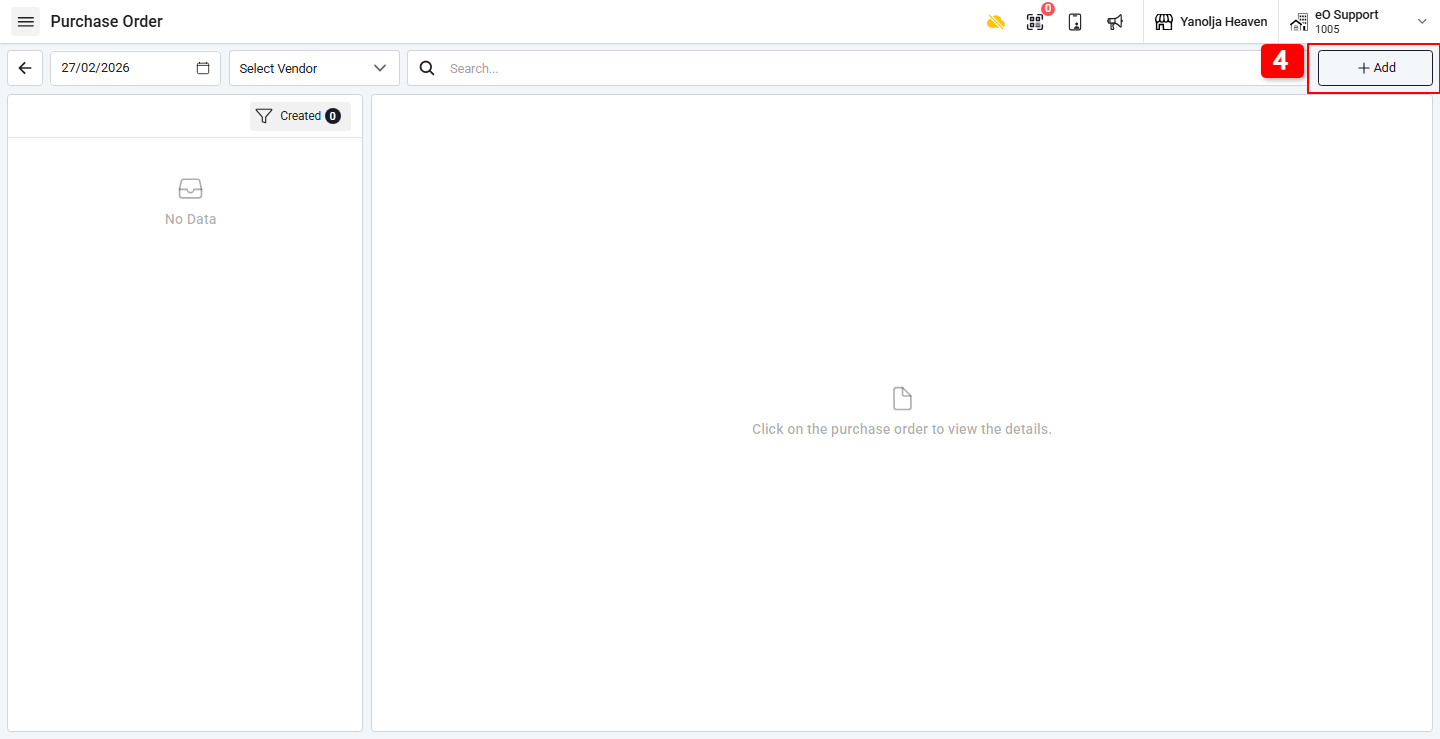 4. Click on Add to create a new PO.