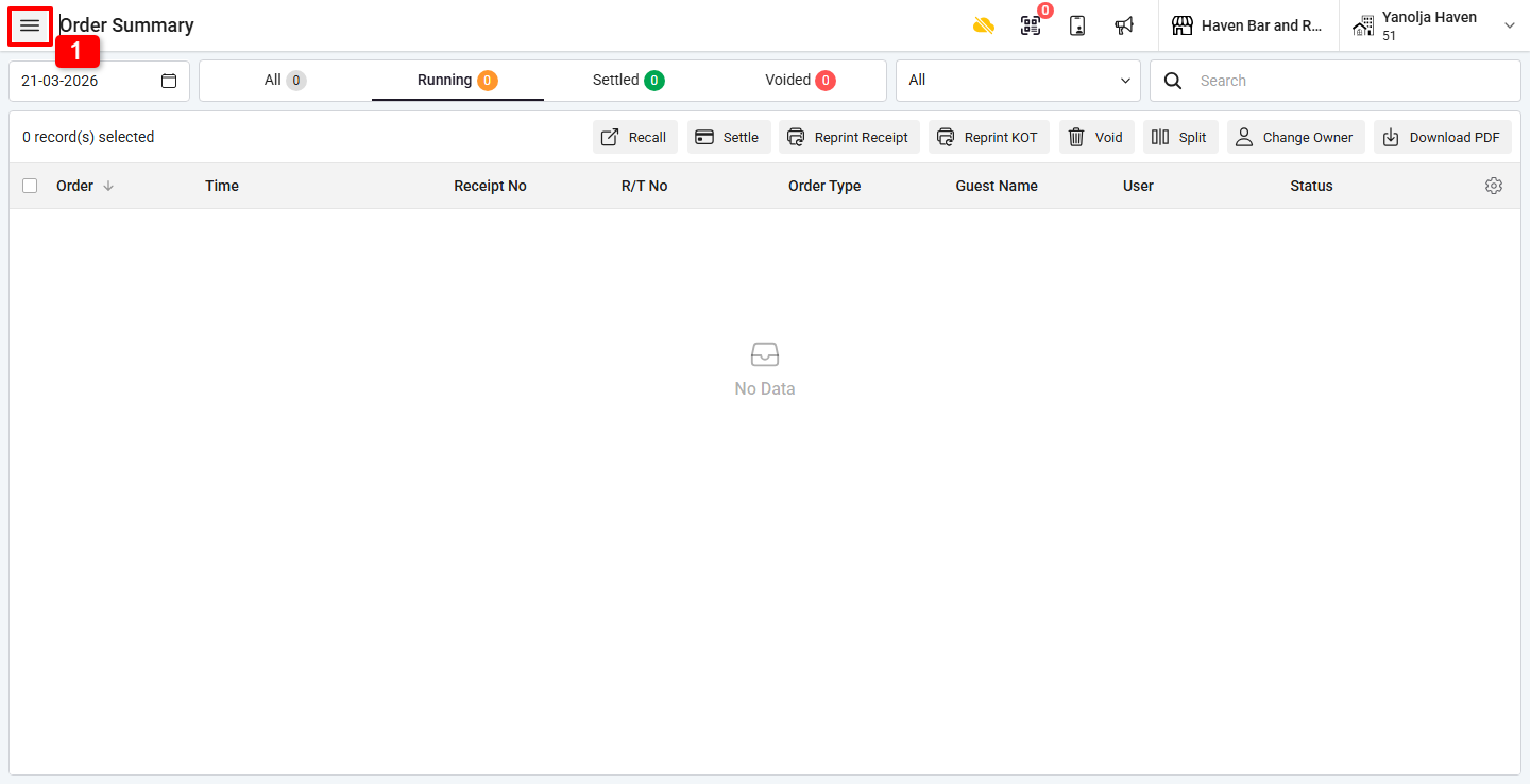 1. Click on the ☰ (Three Lines Menu).