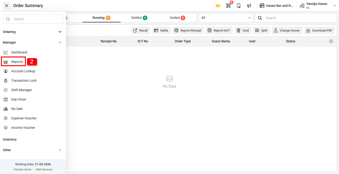 2. Under Manager, click on Reports.