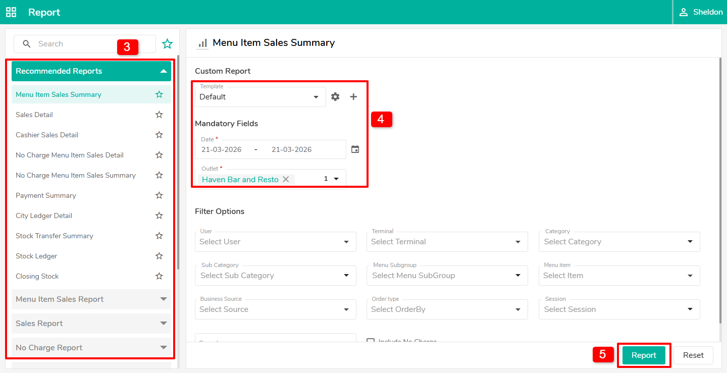 5. Click on Report to generate the report.