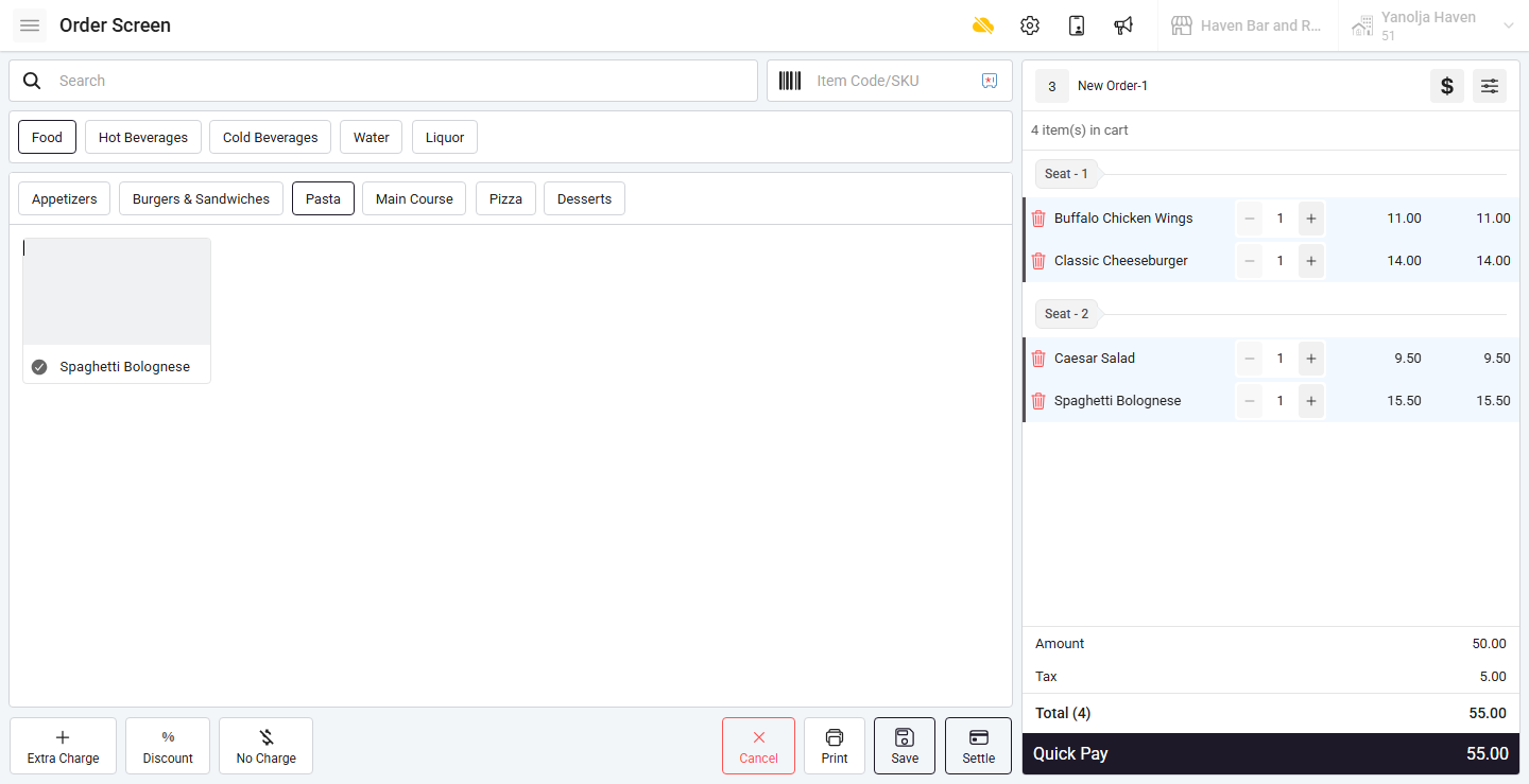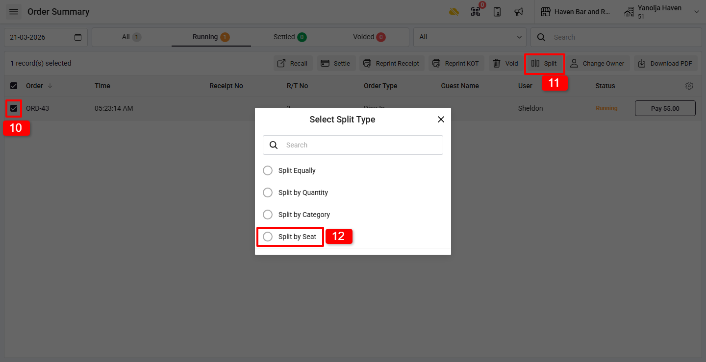 In eZee Optimus, the Split Bill by Seat feature allows you to generate separate bills for each guest sitting at the same table based on the items they have consumed.