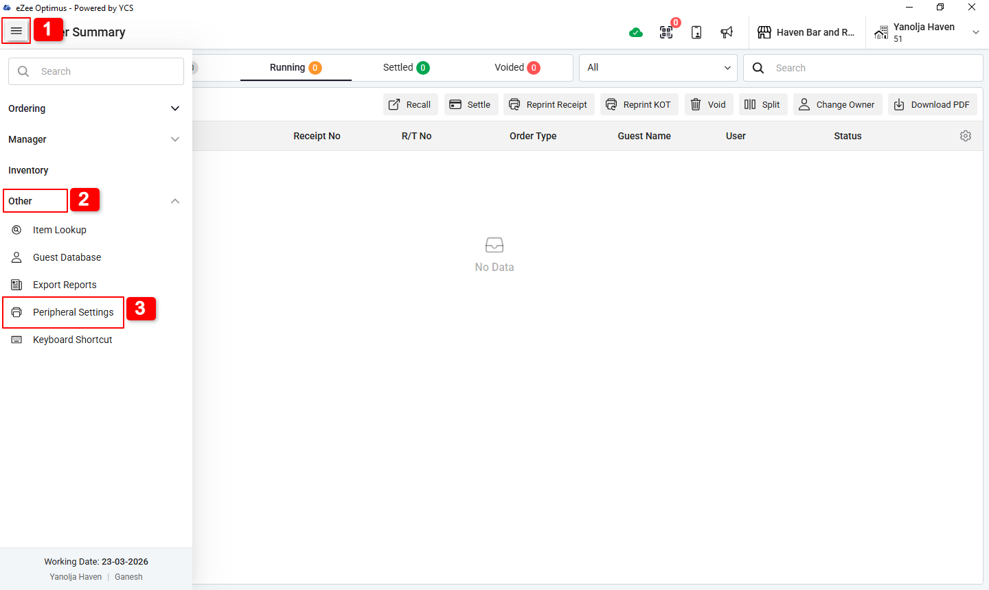 3. Navigate to Peripheral Settings.