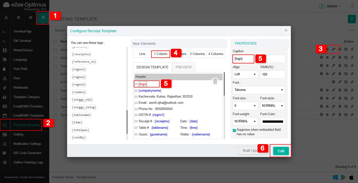 3. Add {logo} Tag in the Receipt Template :