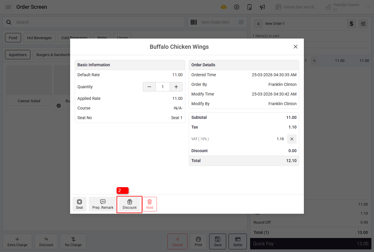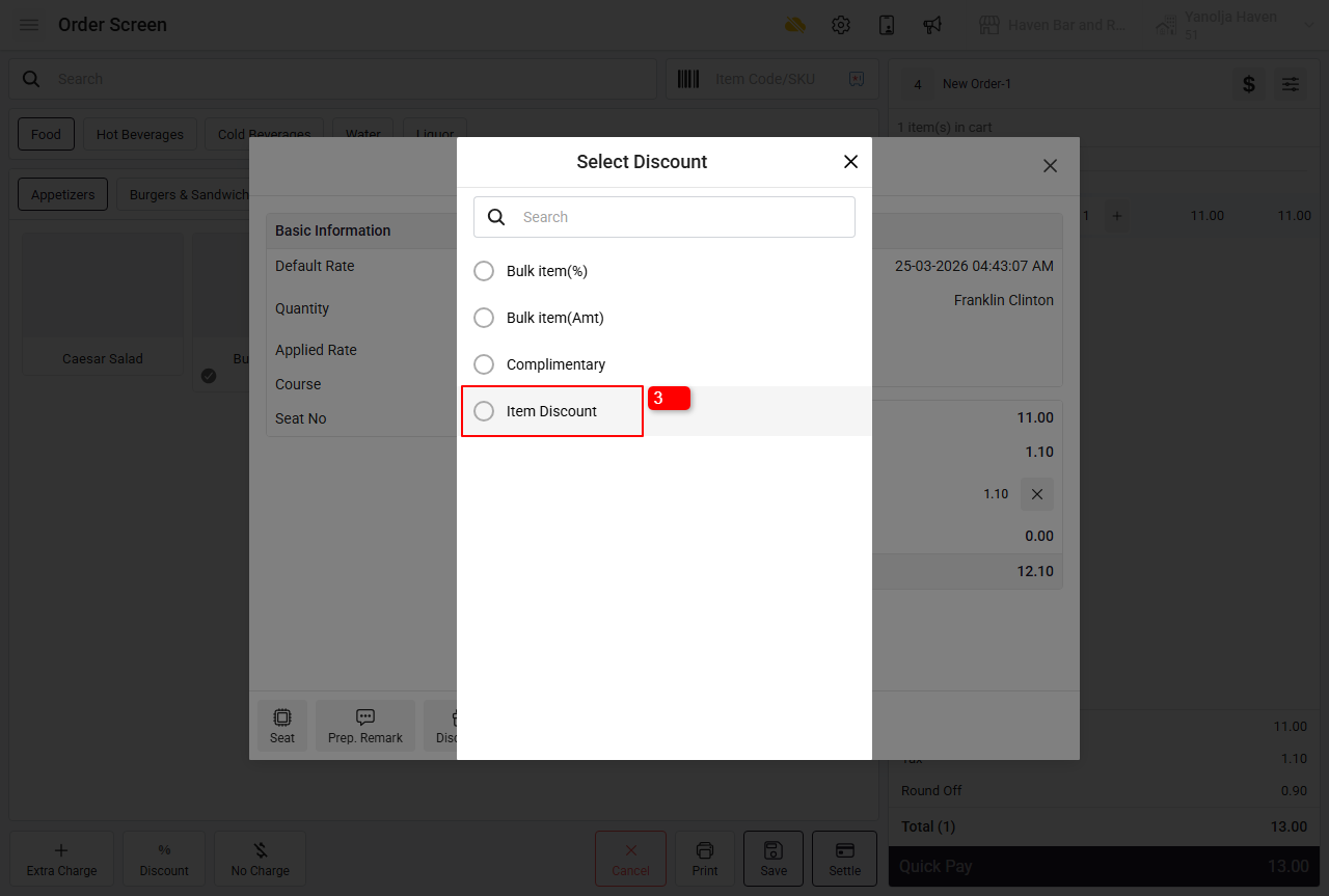 1. Select the item you want to apply discount on.