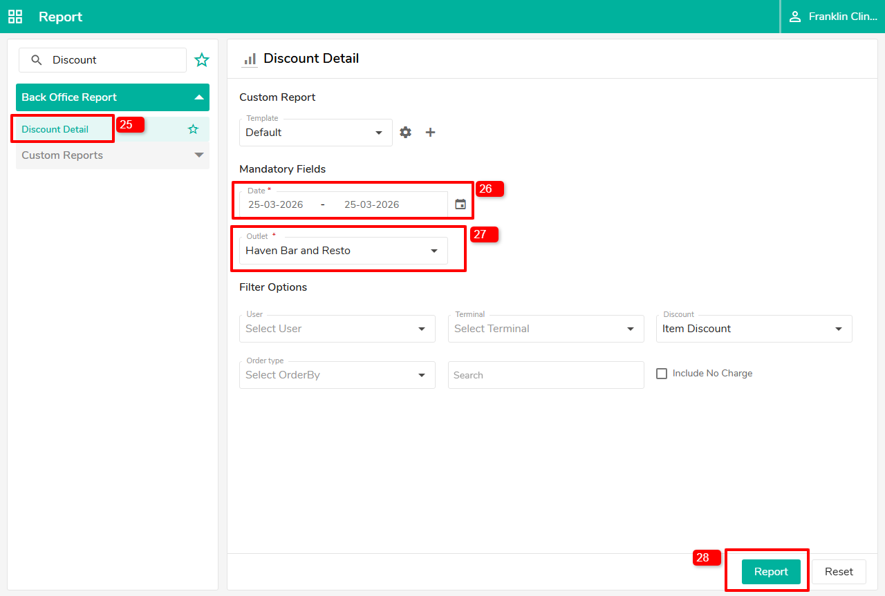 25. Select the Discount Detail Report.