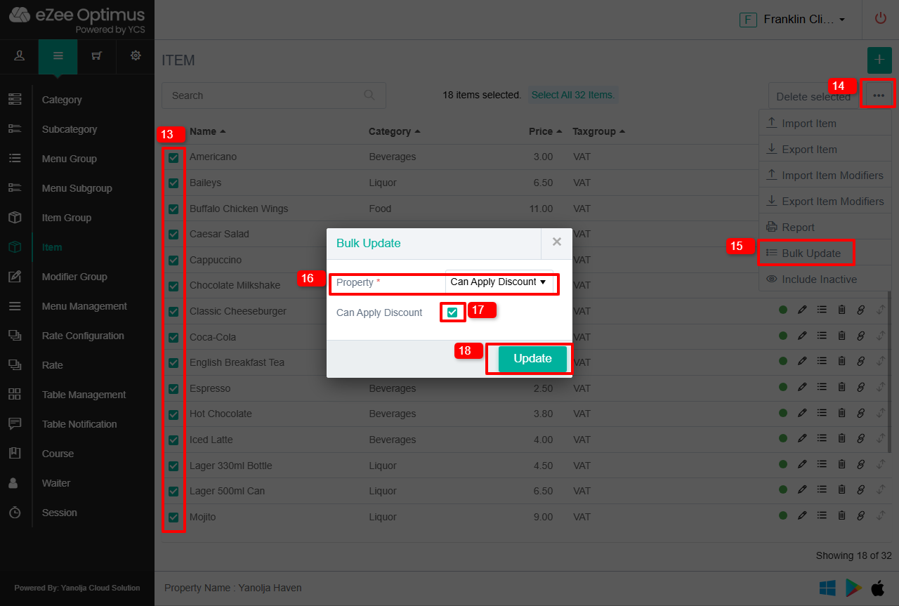18. Click on Update and selected items will be updated.