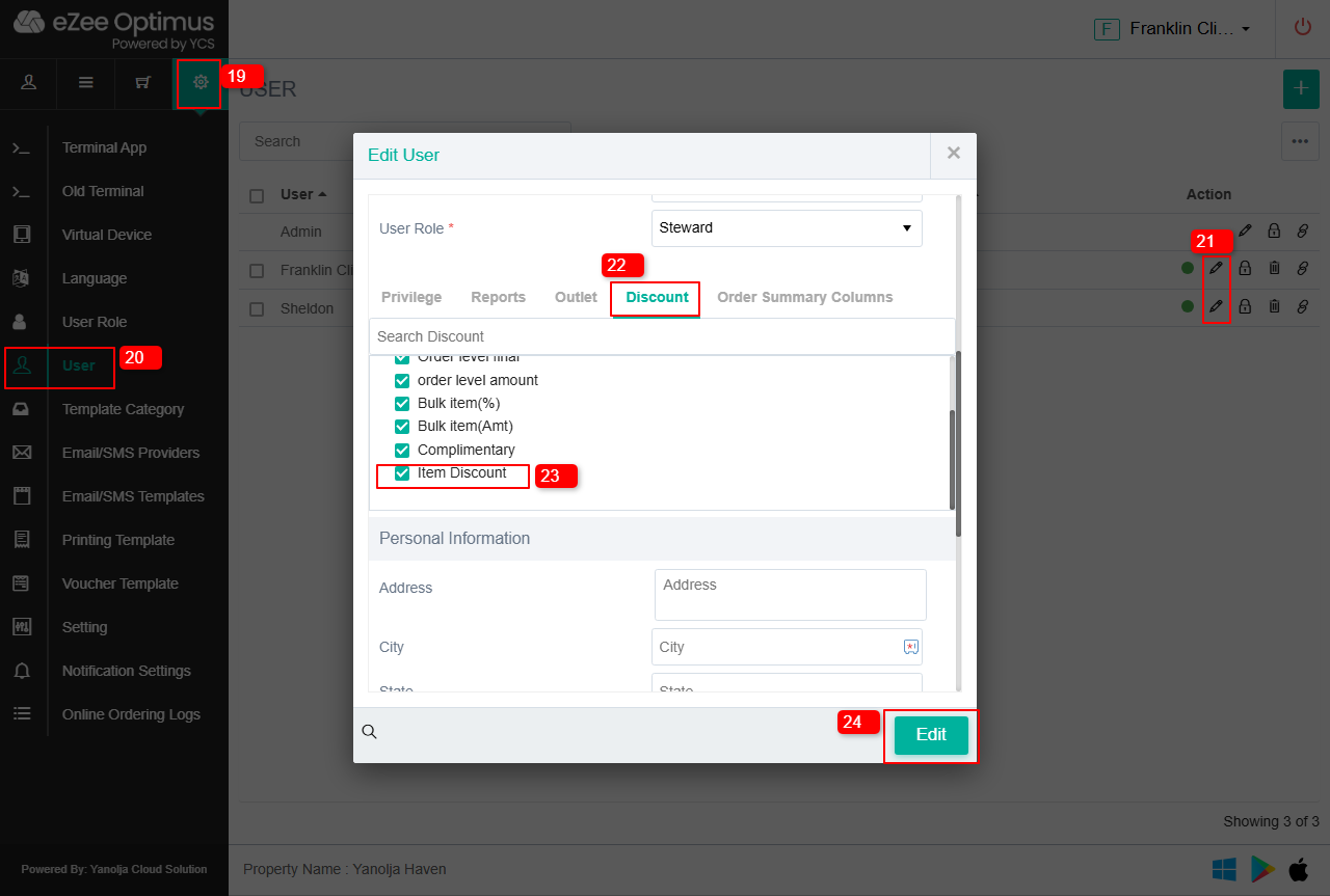 23. Select Discount that a user should be allowed to give.