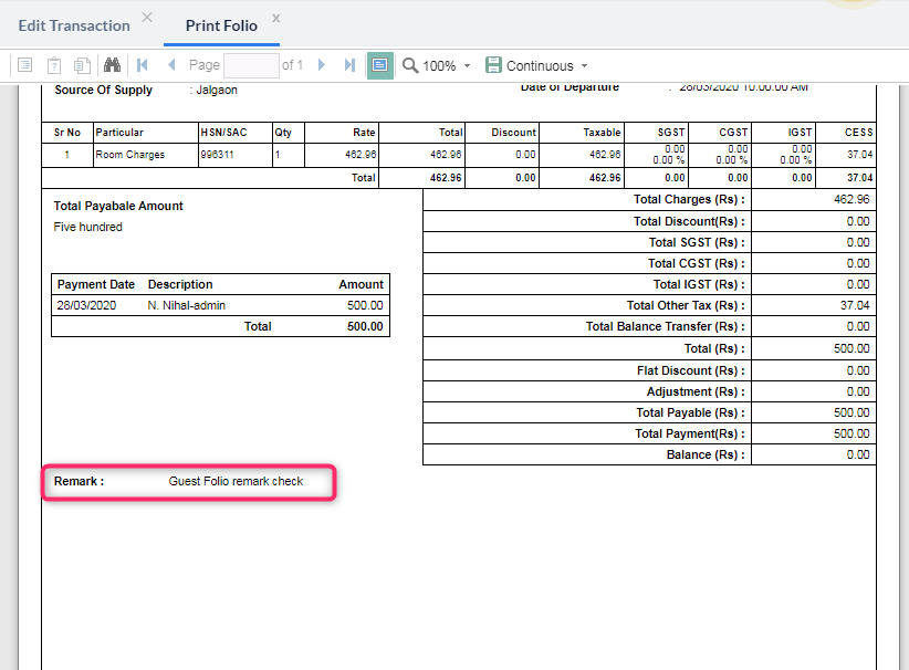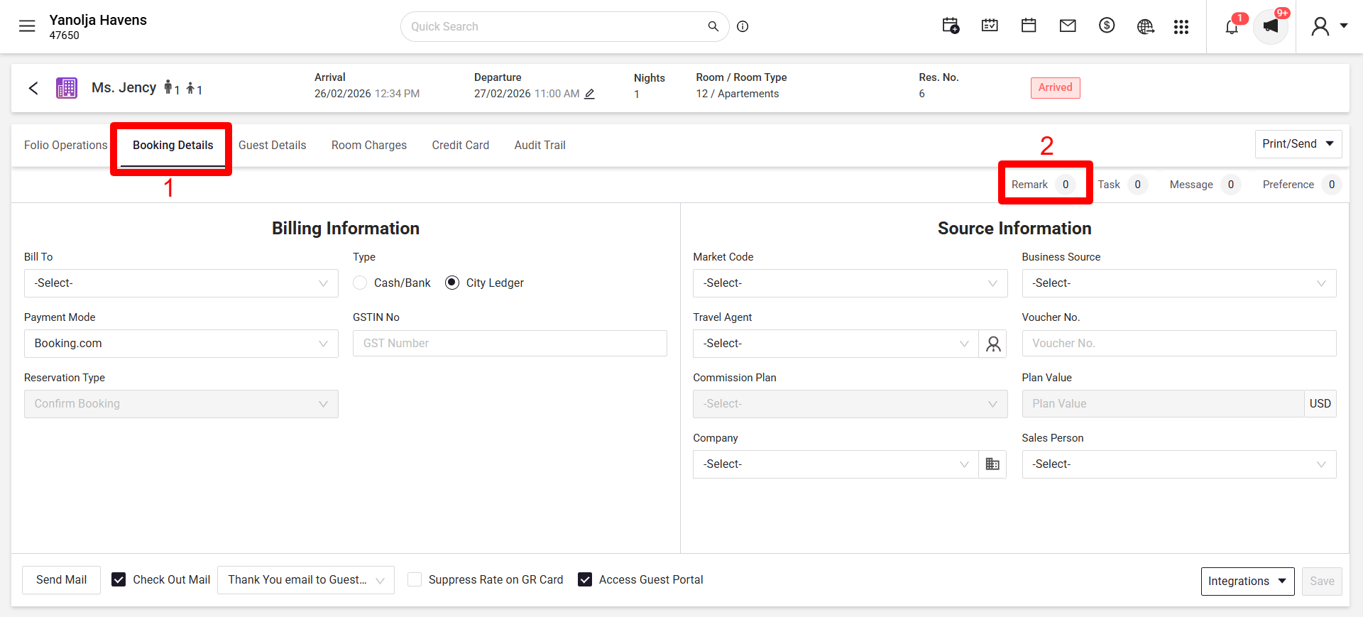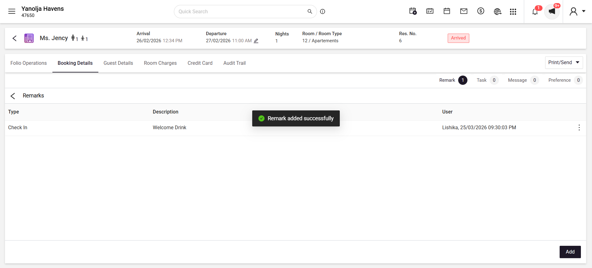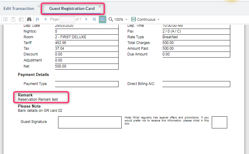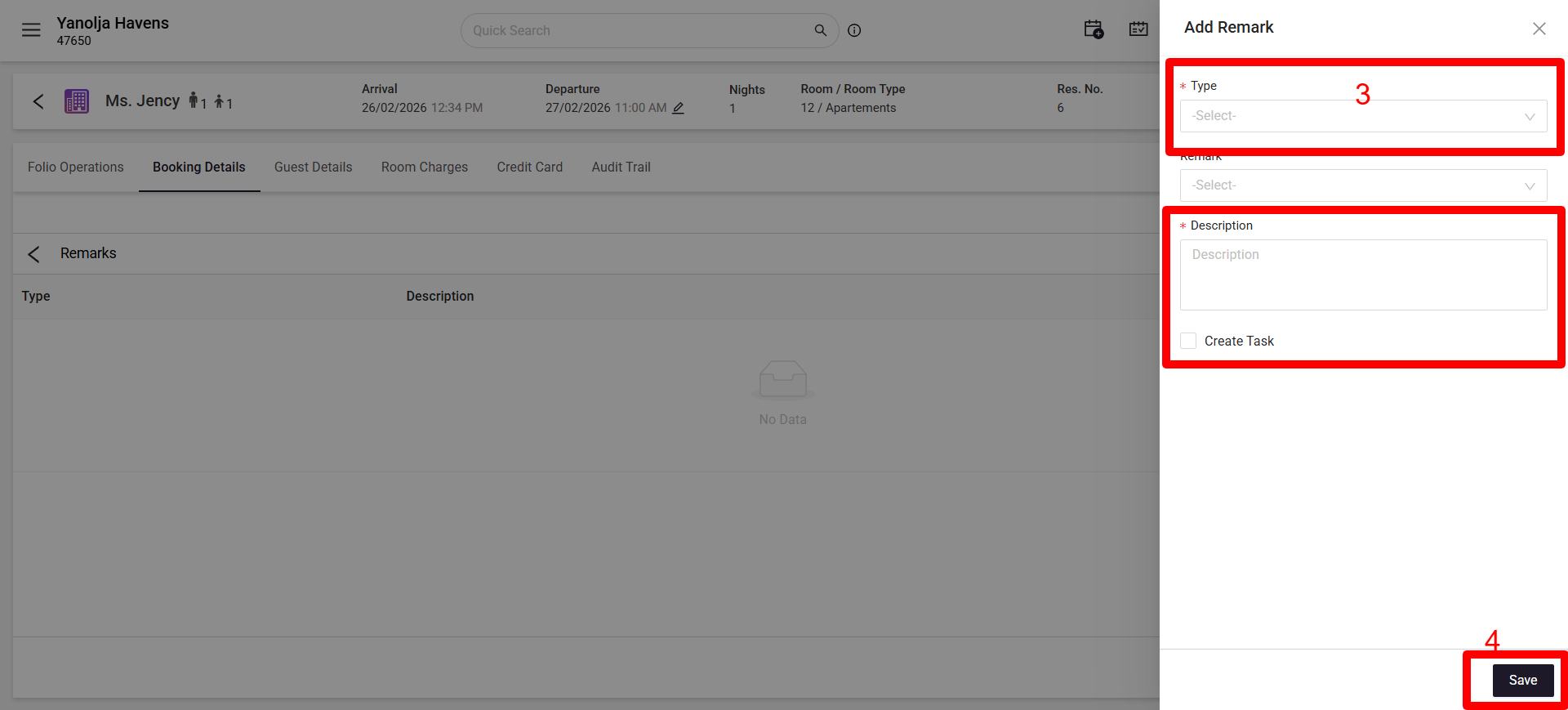 Refer to the below screenshot to add a remark in Edit Reservation