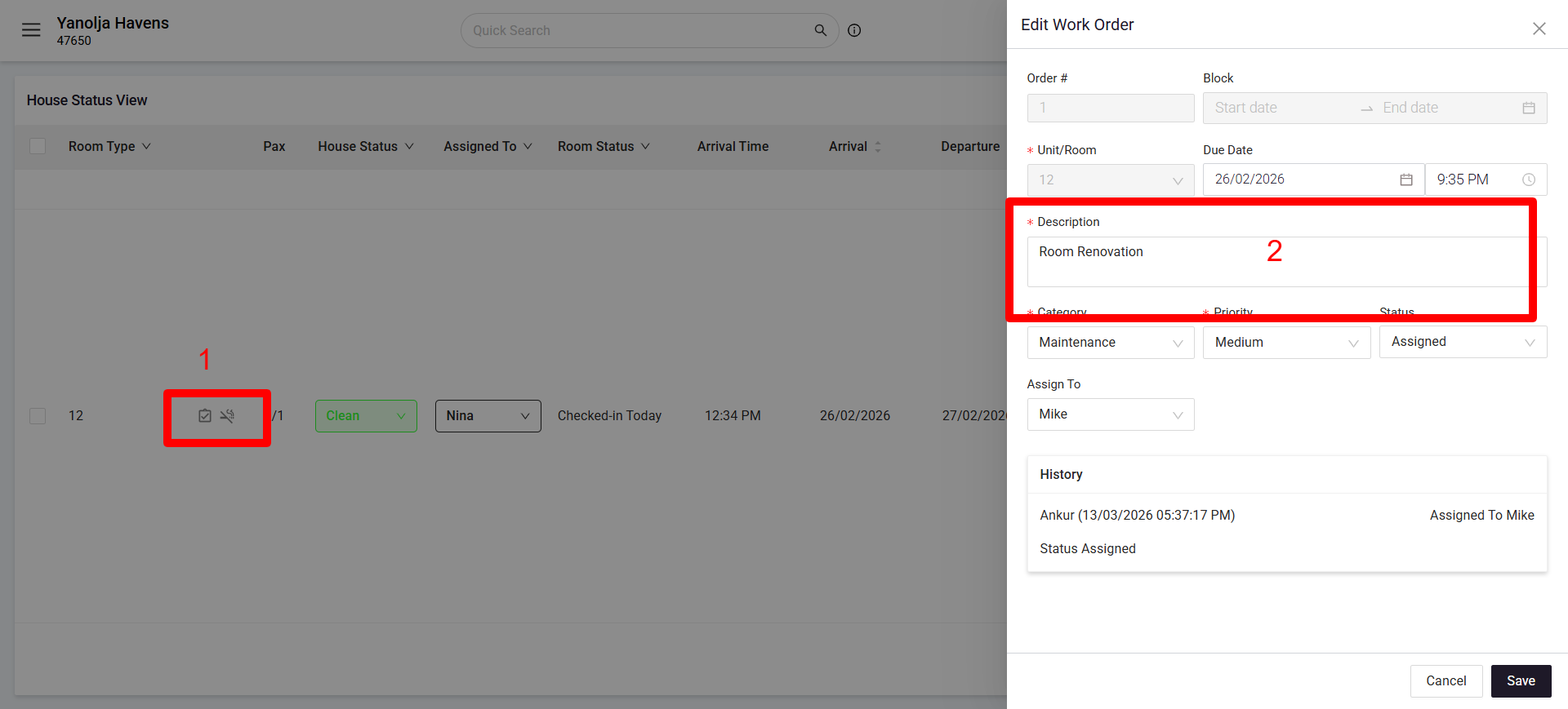 - Visible in the Housekeeping module and the Arrival List.