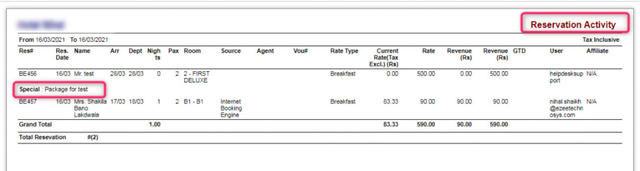 - Appears in the Reservation Activity Report as "Special."
