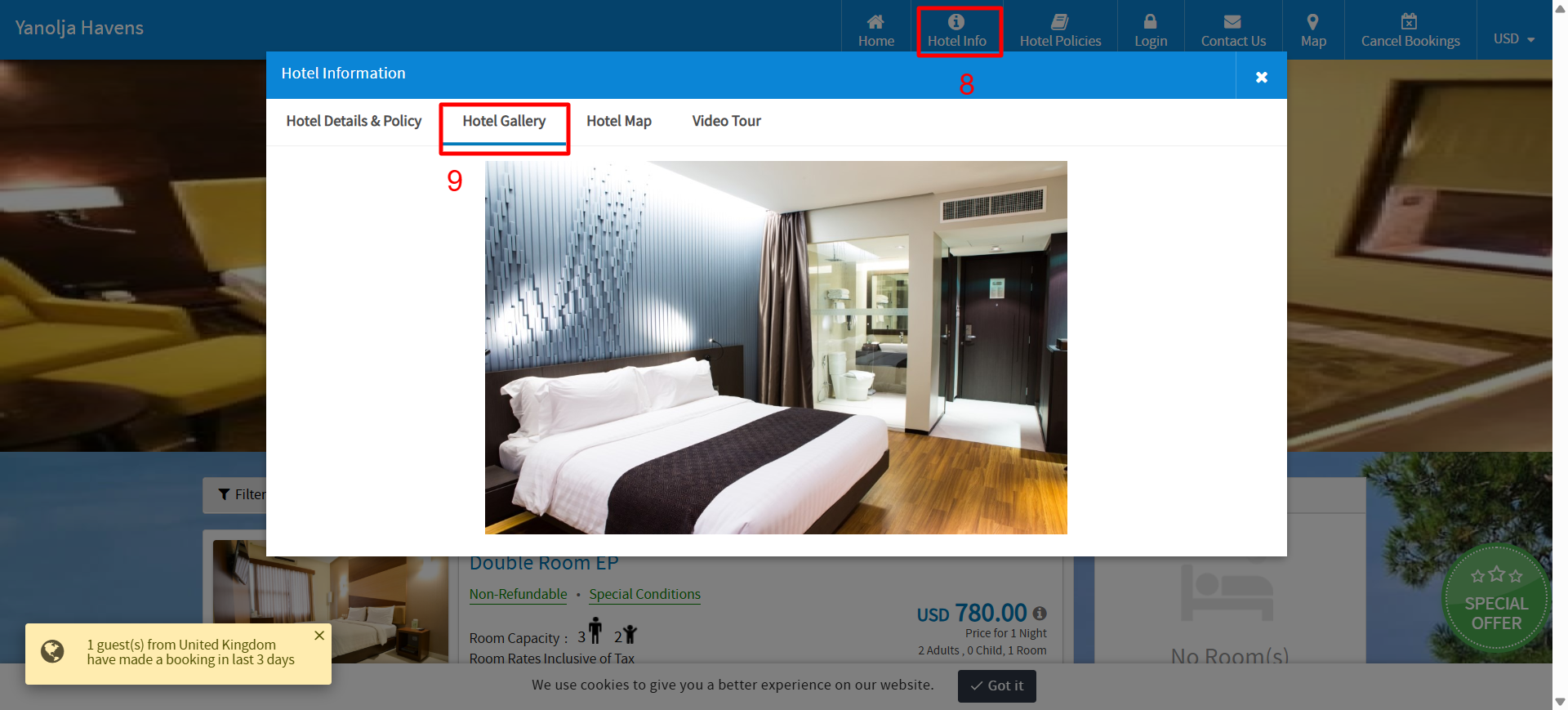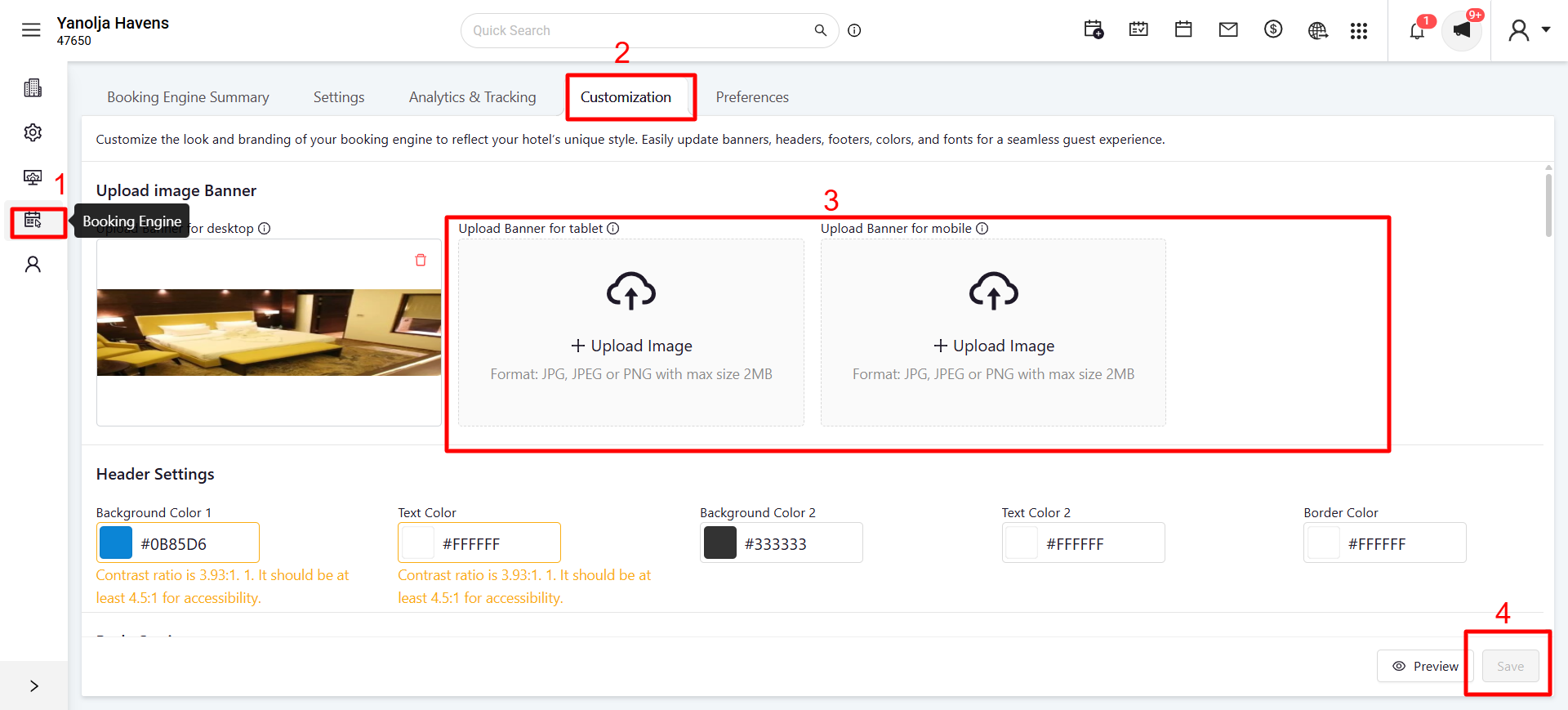 To update your hotel's images displayed on the booking engine, follow these steps: