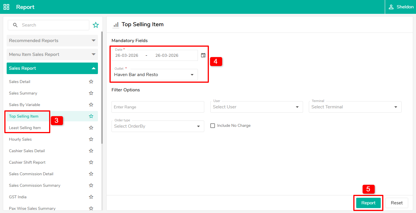 In eZee Optimus, the Top Selling Items and Least Selling Items reports help you analyze item performance over a selected period.