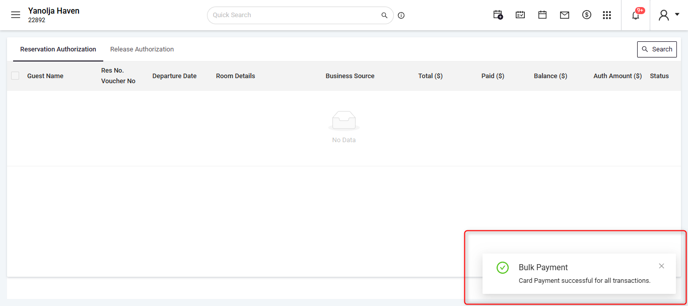 The system allows you to charge multiple reservations at once using Bulk Authorizations.