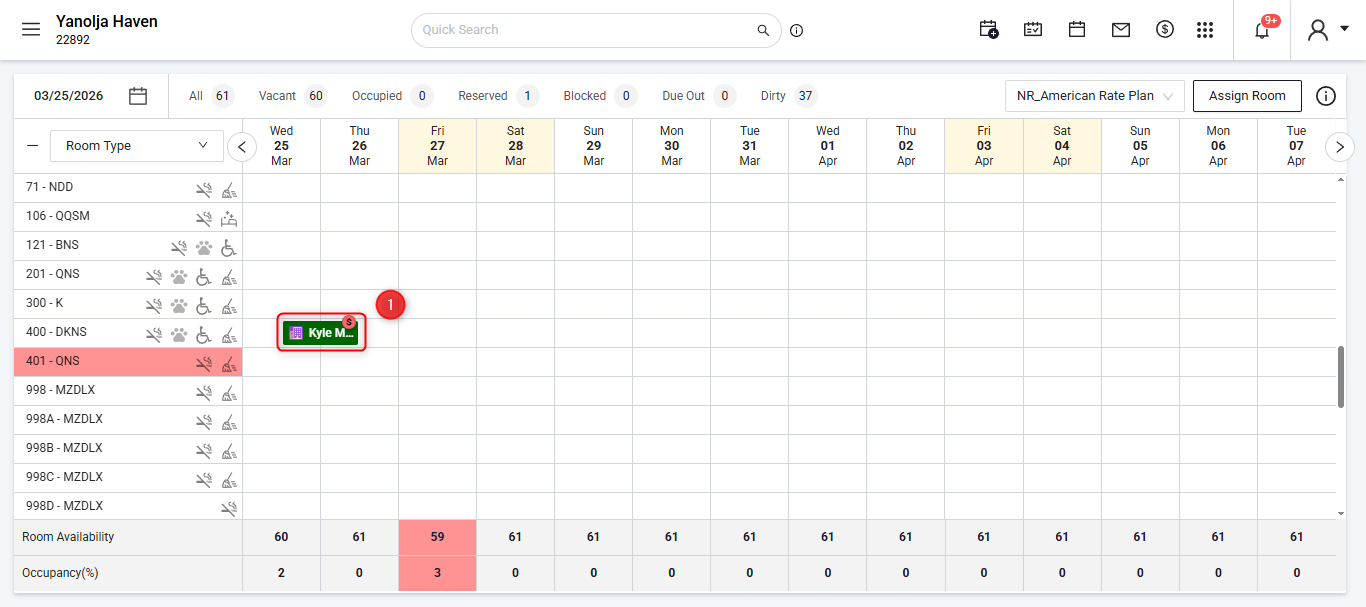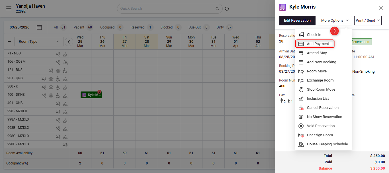 - Open the required reservation.