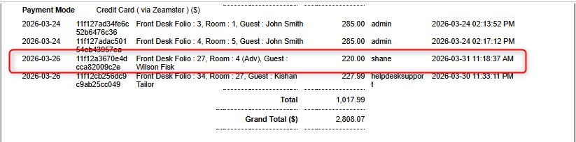 A new window will open displaying the report where you can view all charge and refund transactions categorized by payment mode.