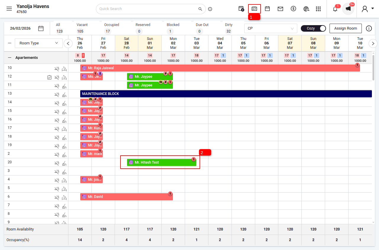Log in to PMS System. > Click on the Reservations section.