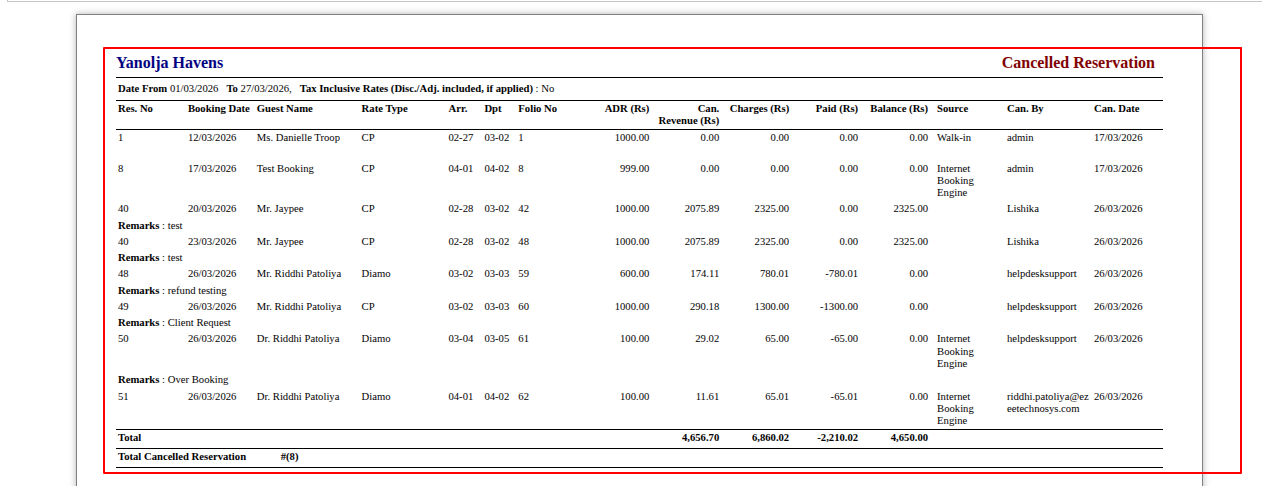 Report: Cancelled Reservations