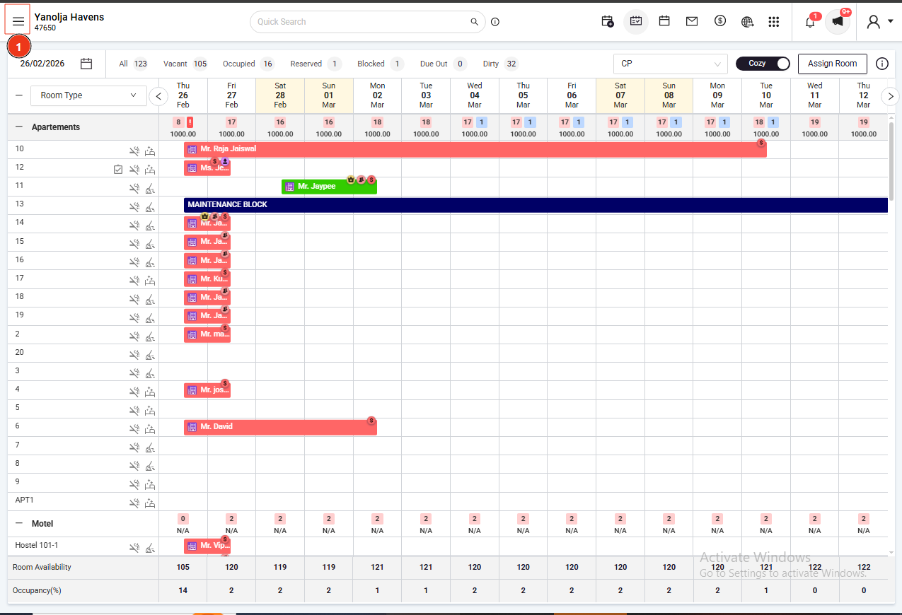 By following these steps, you can view detailed revenue reports categorized by rate type or room type, aiding in comprehensive financial analysis.