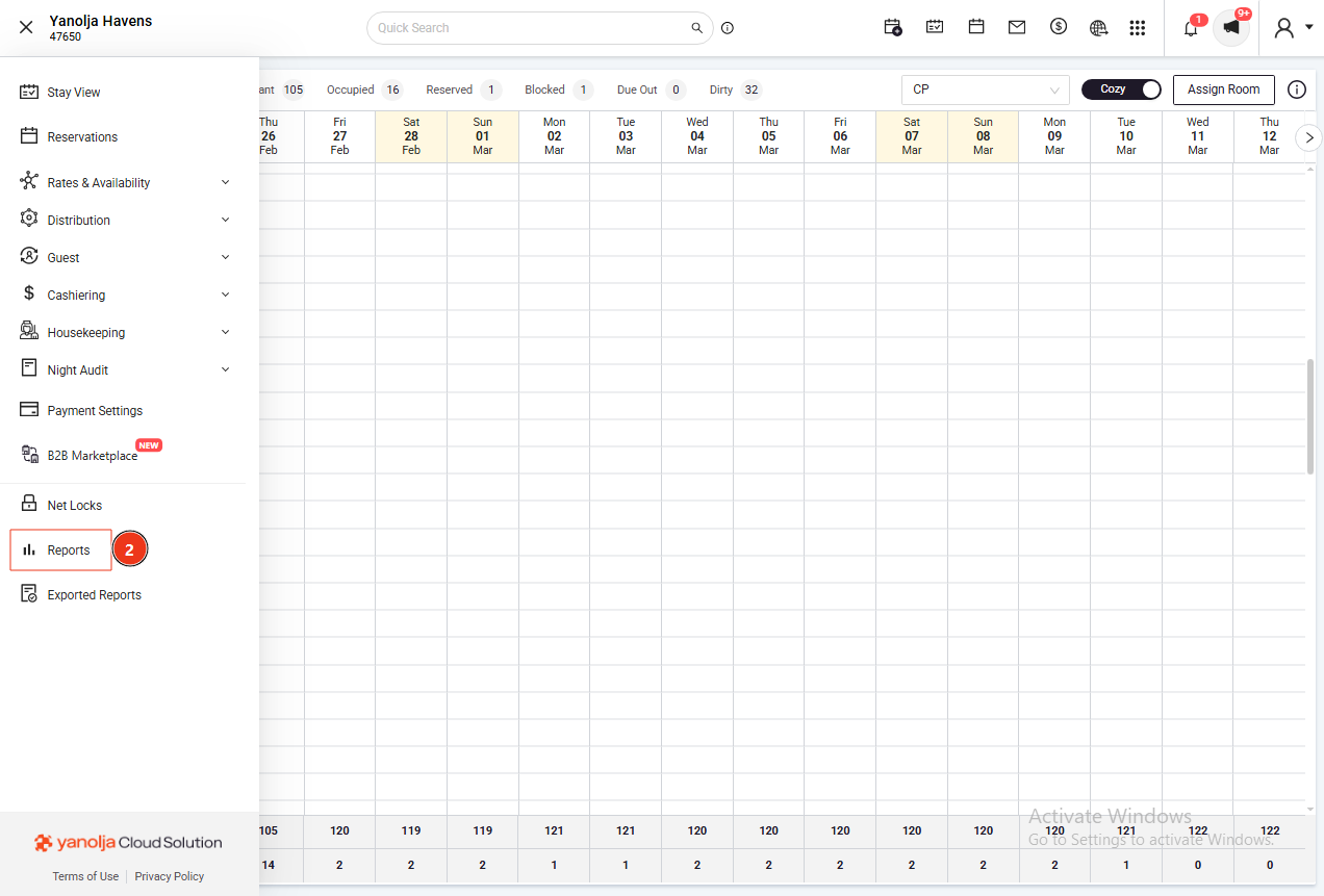 You can generate revenue reports by rate type or room type in PMS. To do this, follow these steps: