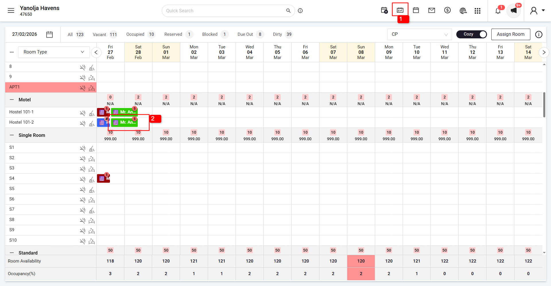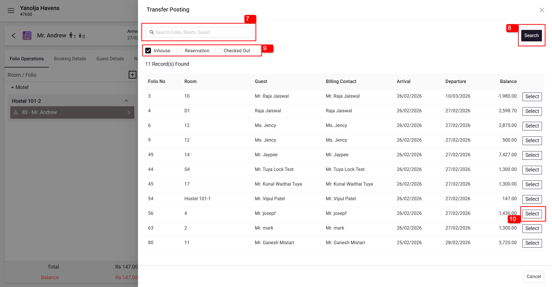 9 You can also select criteria such as In-house, Reservation, or Checked-out.