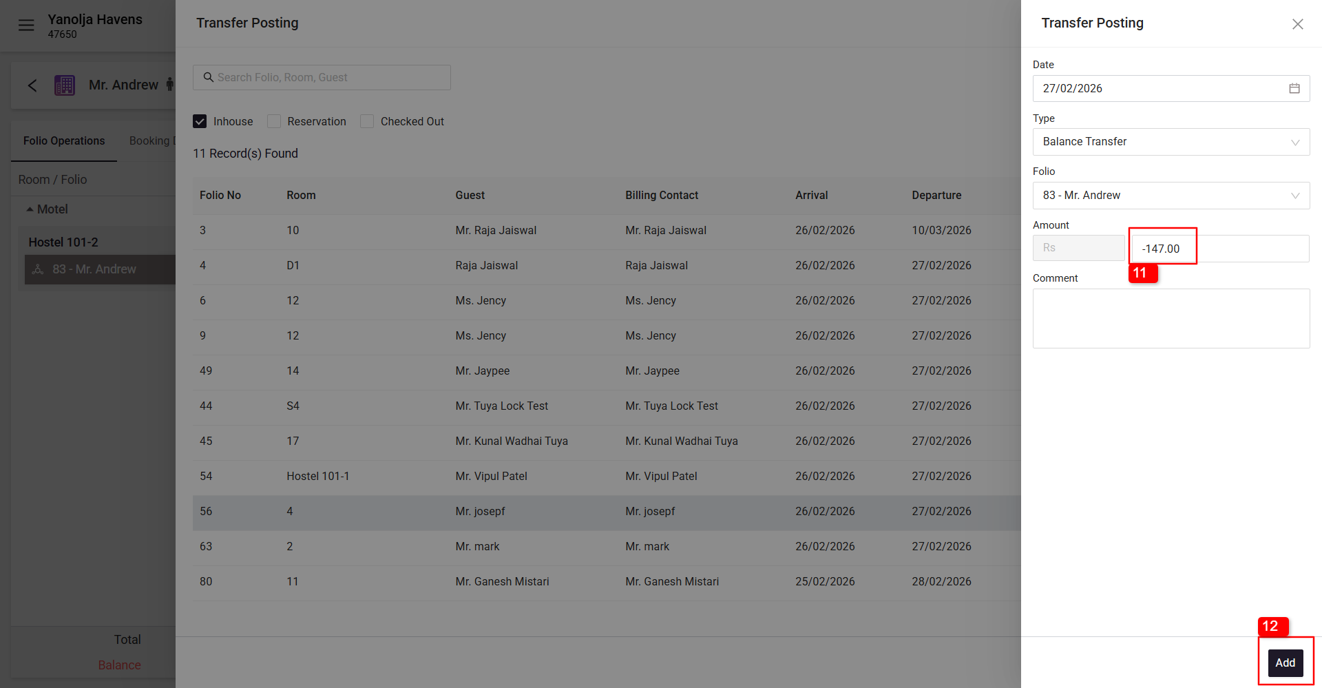 This is typically done when transferring charges from one guest to another or moving the balance from one room’s folio to another.