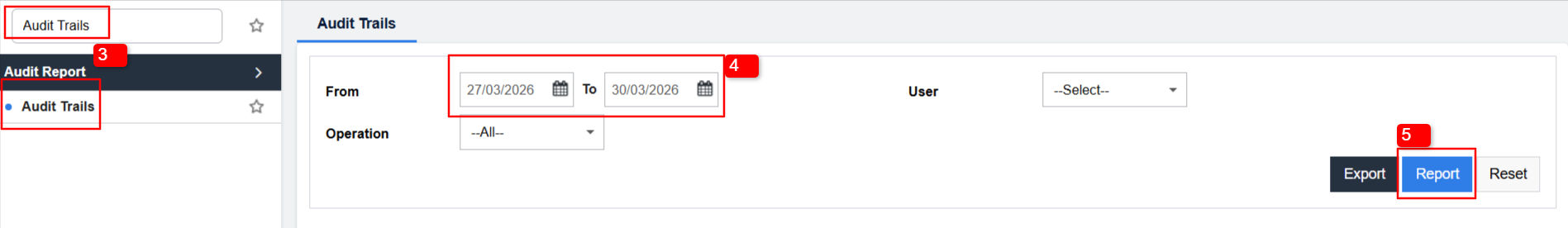 To check transferred folios, you can refer to the Audit Trails Report in the Reports section.