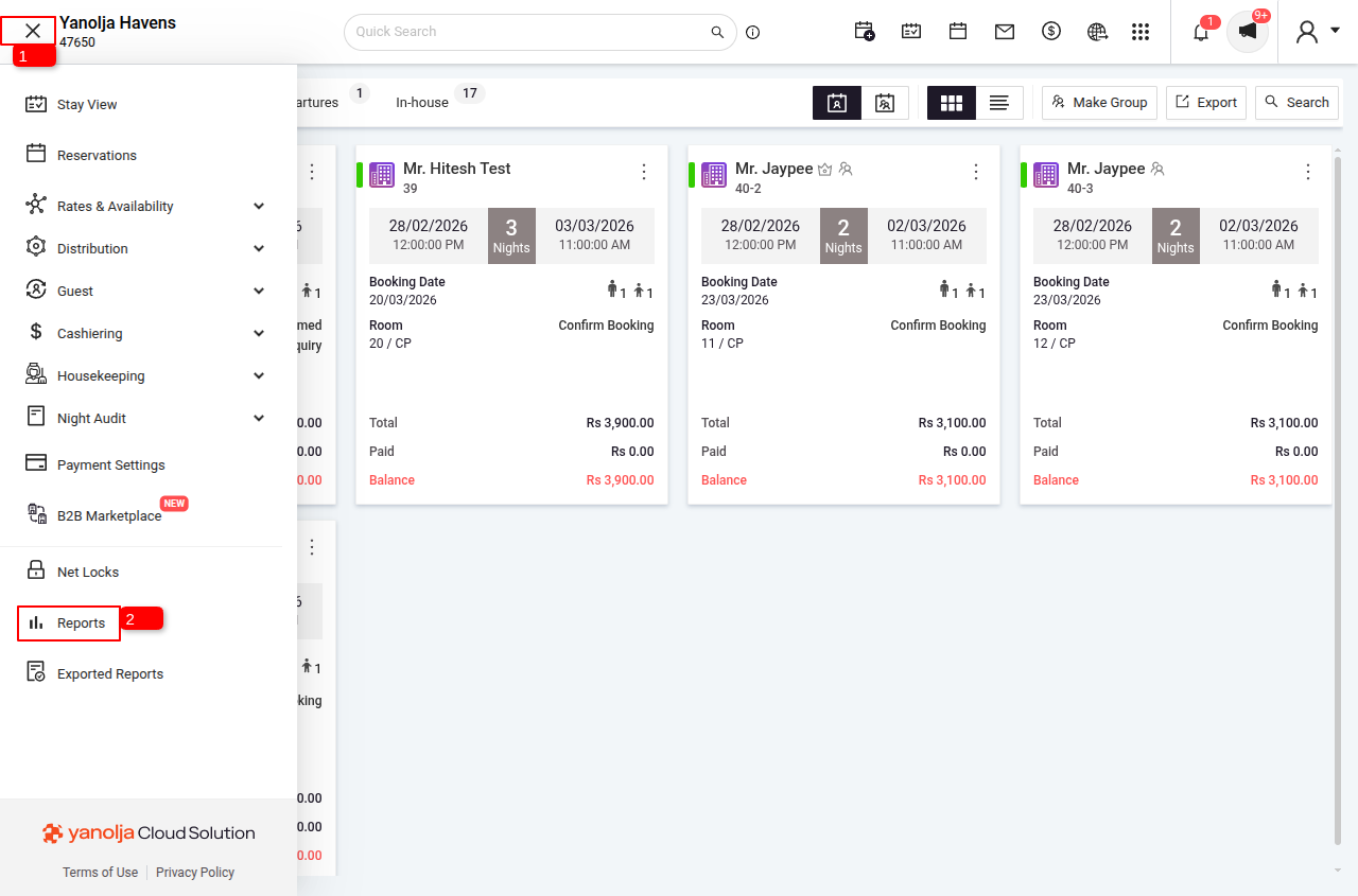 2 Click on Reports.
