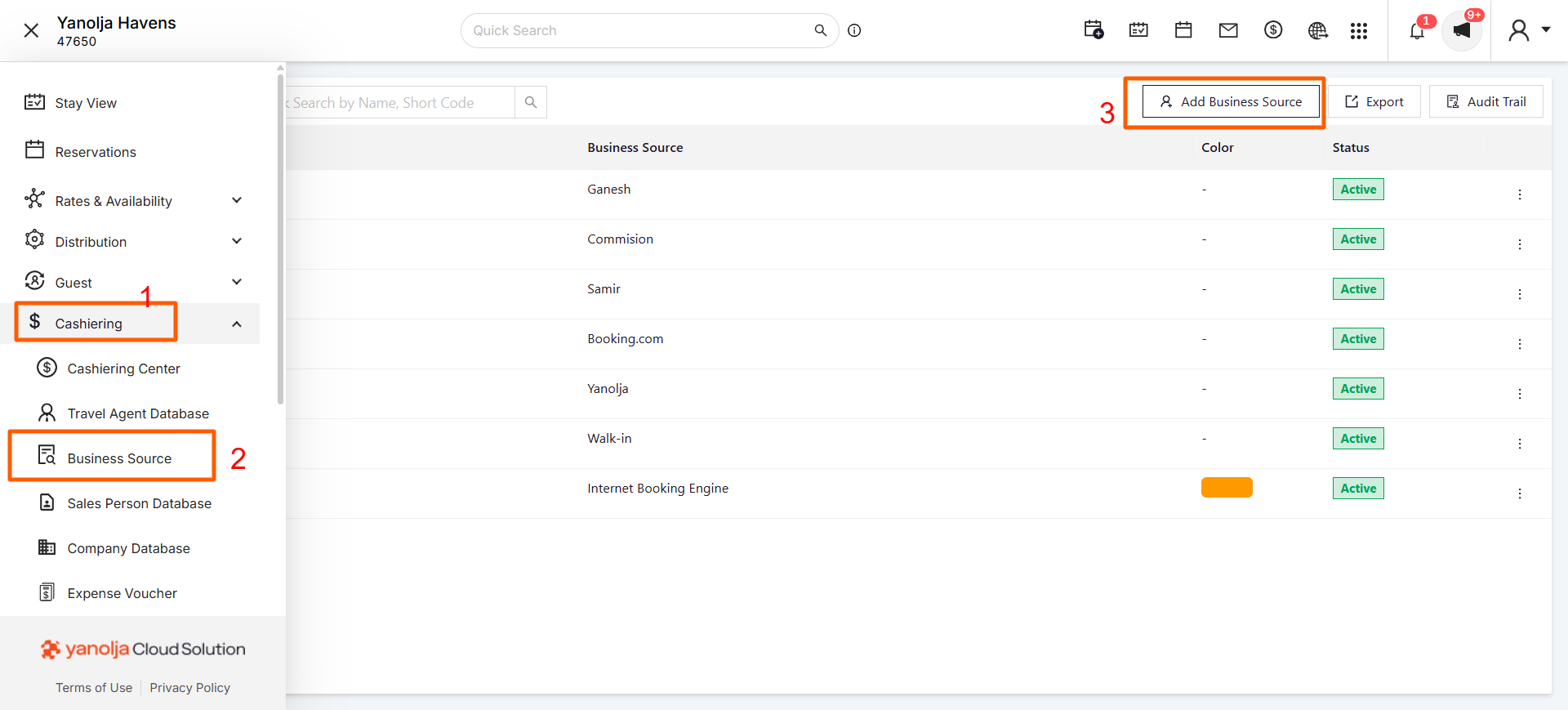 We can add a new Business Source in the PMS system from Unified Solution. Click on the “Add Business Source” button and enter the name and the short code you want to associate with it.