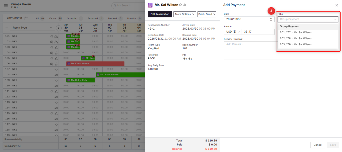 This article explains the different methods available to add payments for a group reservation in the Property Management System (PMS) under Yanolja Cloud Solution.