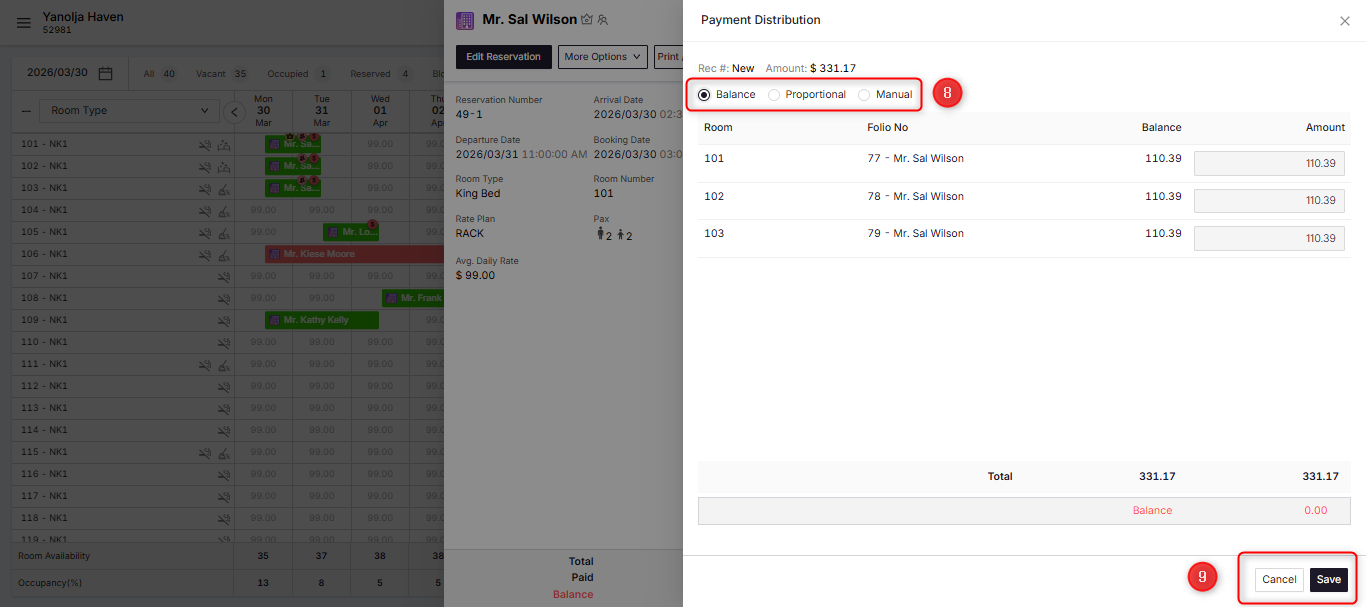 After saving, it will take you to the page where you manage how you want to distribute the balance among each folio: