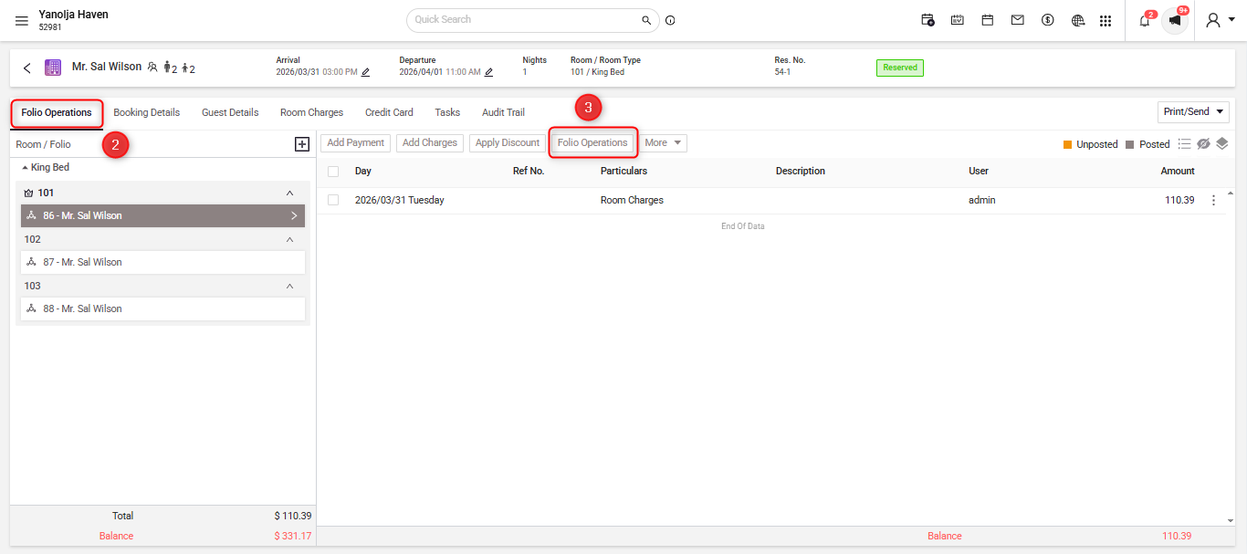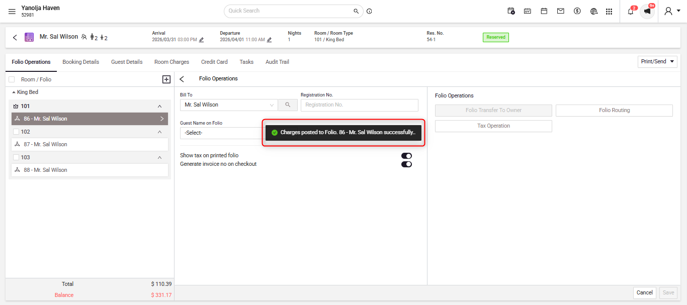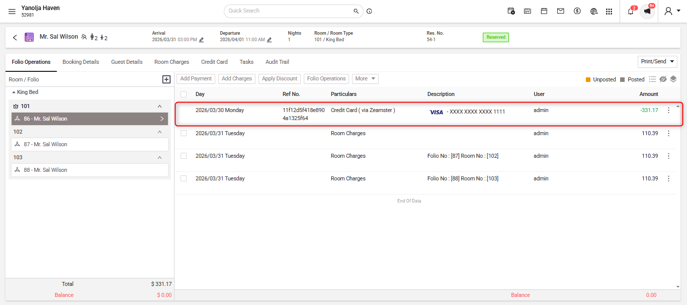 There are three ways you can post this amount:- Balance: This will clear the folio balances sequentially from top to bottom.