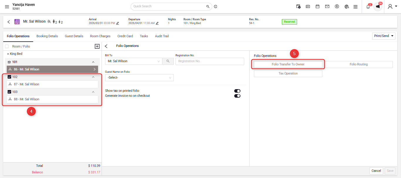 Select all the other folios so you can move their charges to the folio of the group owner.