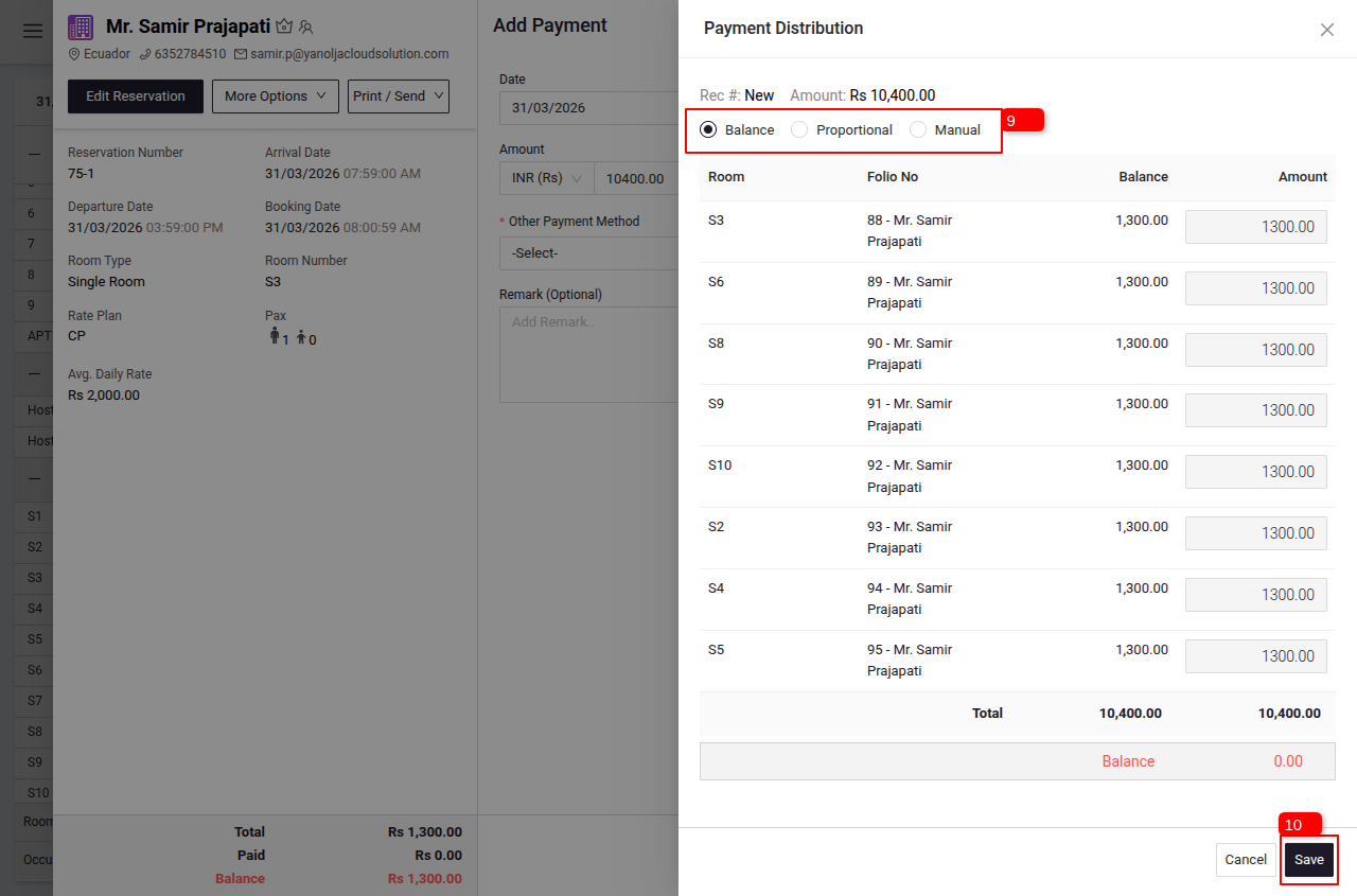 • By Balance: Allocates payment based on each room’s outstanding balance.