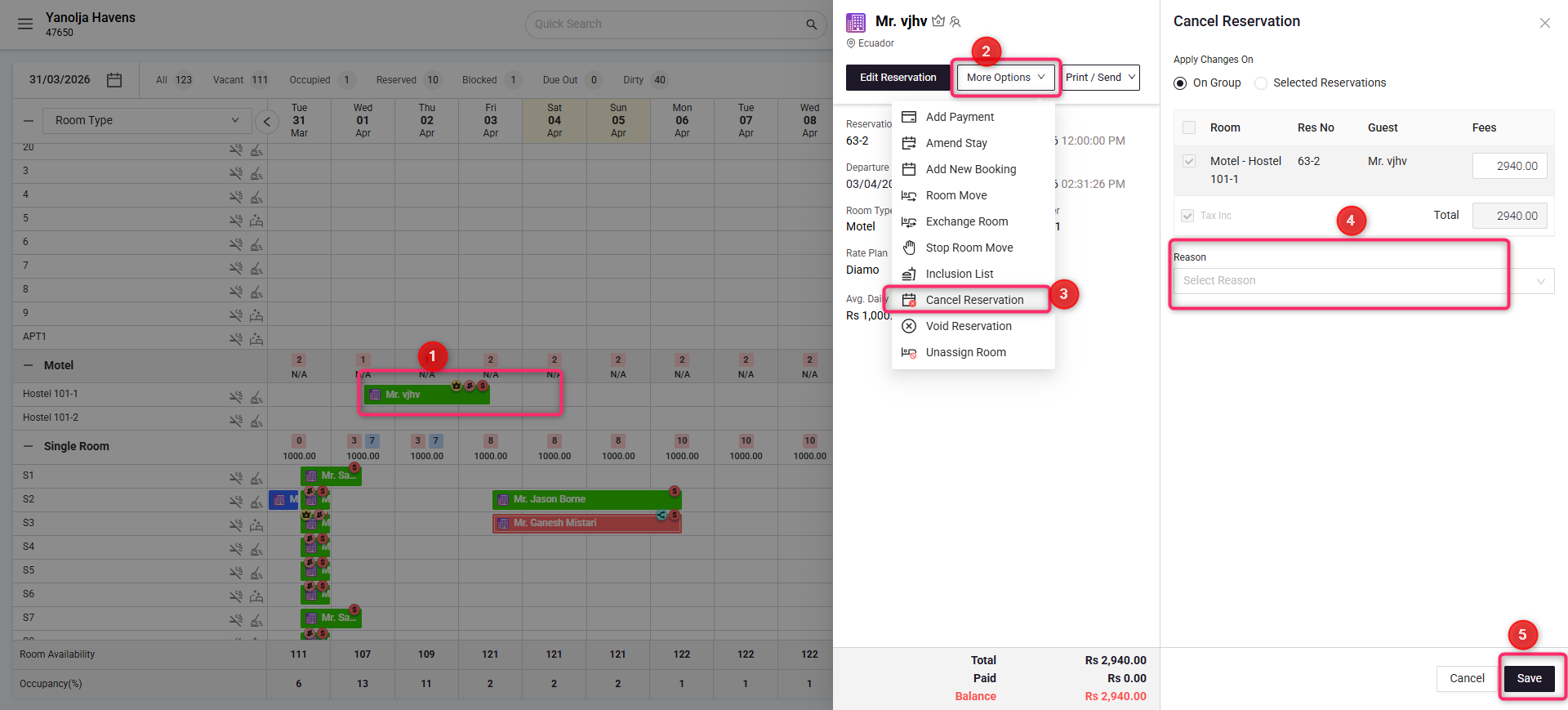 When a booking with advance payment is cancelled or results in a no-show, hoteliers may either retain charges (as per the hotel’s cancellation policy) or refund the amount to the guest. The system provides multiple options to manage and settle these scenarios correctly.
