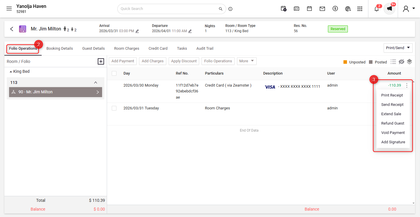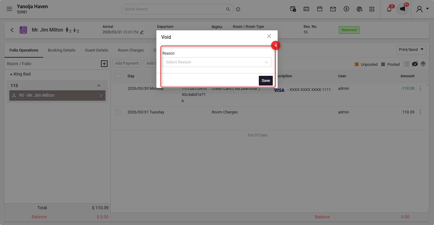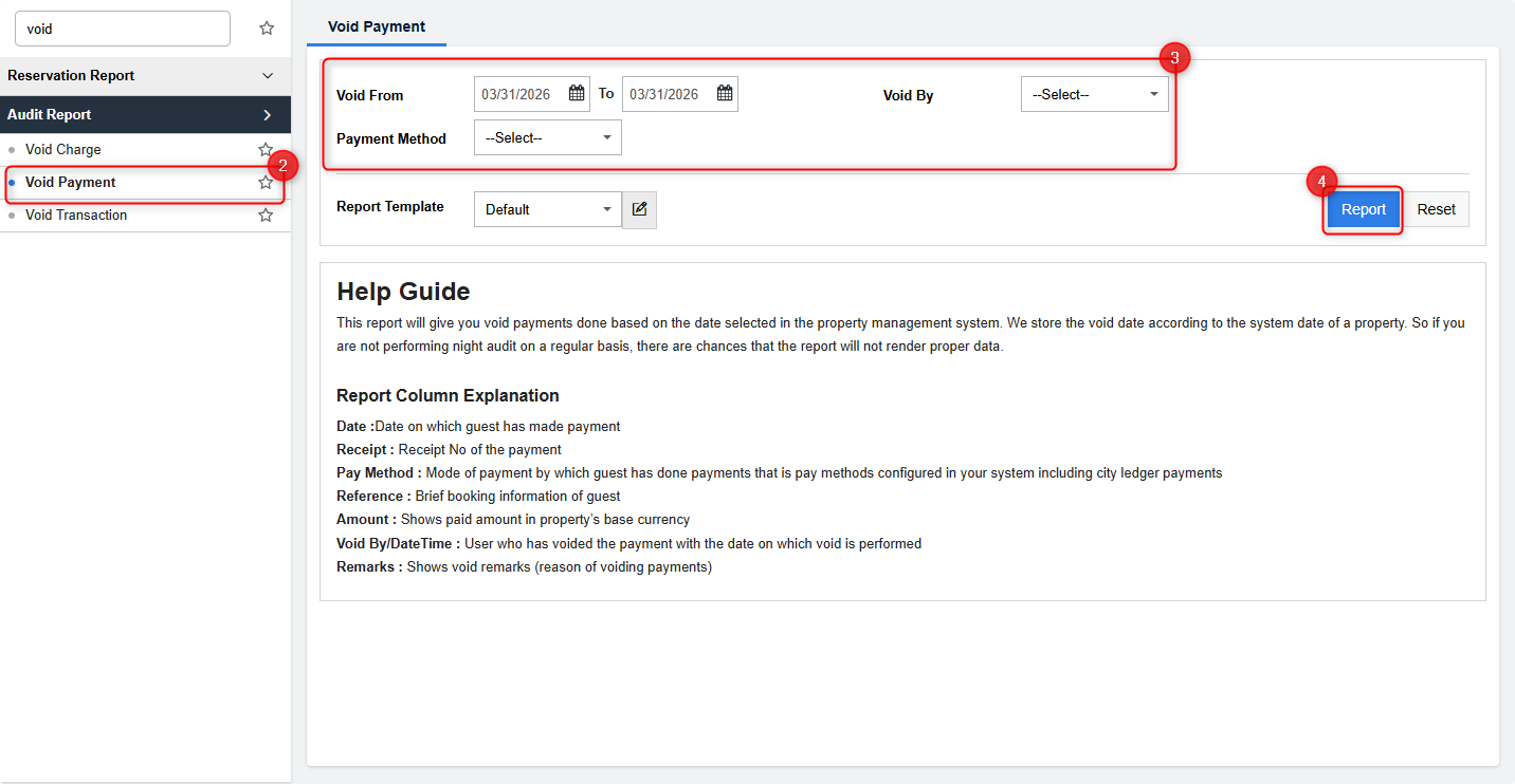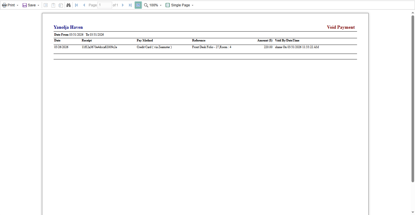 - Void Payment of a Guest Folio
