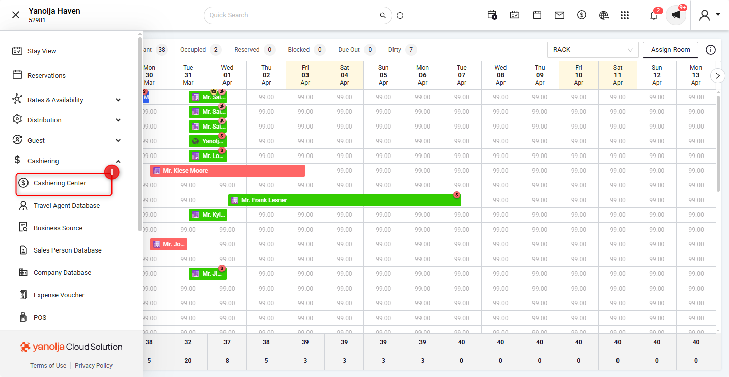 - Navigate to the Cashiering Center in the PMS.