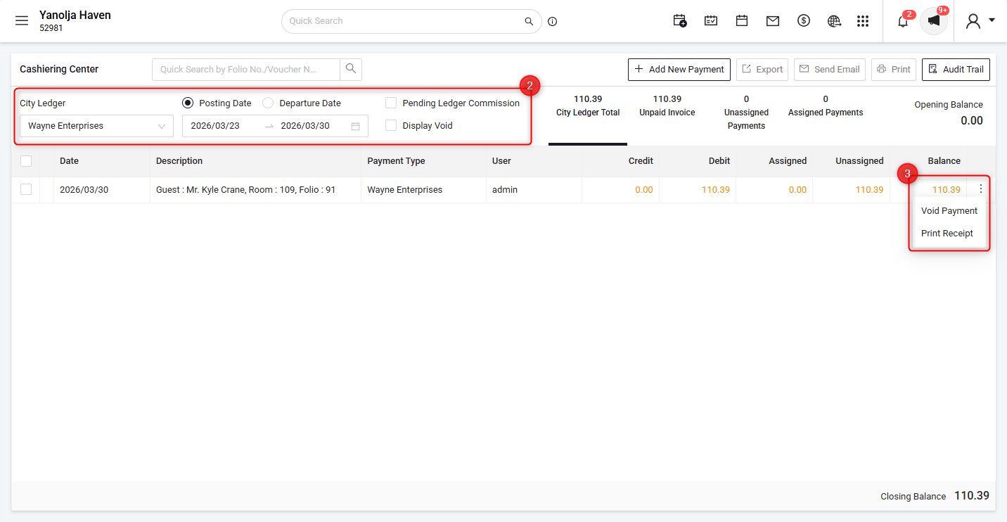 2. Void Payments Posted to the City Ledger