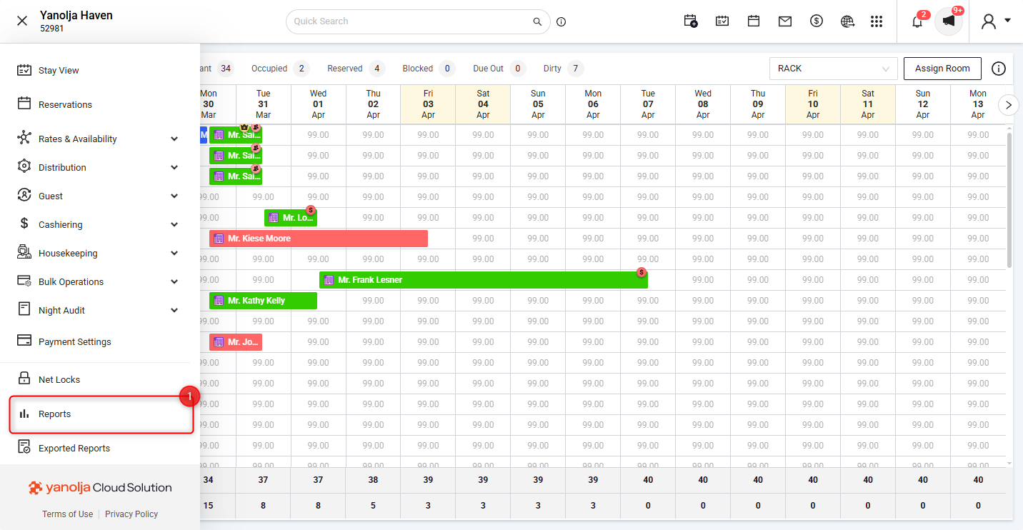 - Navigate to Reports in the PMS.