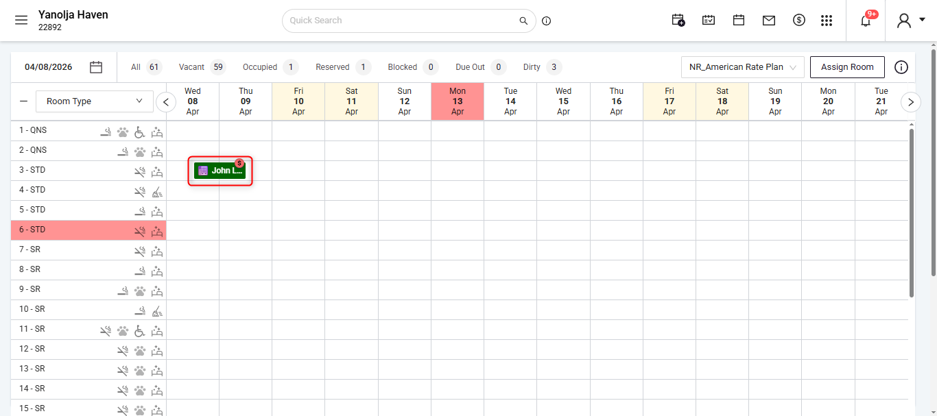 Add Reservation or Drag & Select: From the Stay View screen, drag and select the required room or click add new reservation.